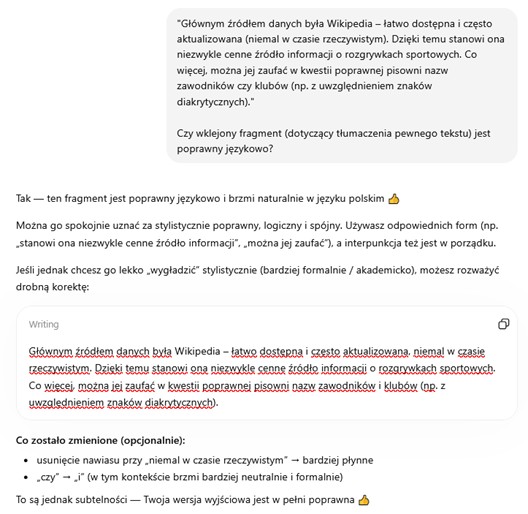Also in a new conversation, we asked for revision of the full translation created by the AI. The fragment in question currently looks as follows: